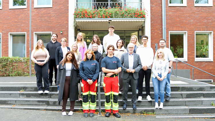 Bürgermeister Matthias Müller hat in diesem Jahr insgesamt 13 Berufsstarterinnen und -starter bei der Stadt Herten begrüßt und freut sich über deren tatkräftige Unterstützung.