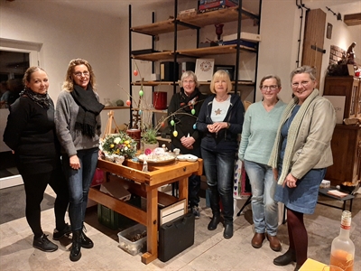 V.li.: Alexandra Petrowitz, Petra Evers, Agnes Rensing, Annette Kerkhoff und Jutta Heming, Tagespflegepersonen aus Velen und Ramsdorf, besuchten die "mutmachwerkstatt" von Gisa Sendfeld.