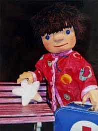 So richtig wohl war dem "Lustigen Ludwig" nicht auf dem Kunstmarkt - zumindest so lange, bis er den Regenschirm für sich entdeckte. Obwohl er rein vom Material her Regen ganz gut ab kann...