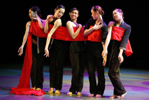 Proben für das Open-Air-Spektakel beim summer in the city 2005 (v.l.): Kerstin Walberg, Petra Kassmann-Hertel (beide Stadtwerke), Bettina Hahn (Kulturbüro), Wilhelm Uhlenbruch (Volksbank) und Oswald Petermann (Kulturbüro).
