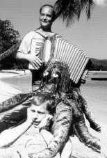 Die Musiker vom Theater "Töfte" und vom Theater "pappmobil" präsentieren am 11. Juli 1999 in der Hertener Innenstadt (Kranzplatte) ihr gemeinsames Programm.