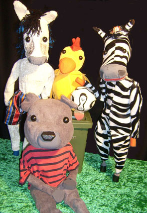 Kind weg, Mann weg, Hund tot, und jetzt? Das zeigt Andrea Bongers mithilfe ihrer Puppen Heinz, Schaf, Manolo Panic und Sissi Snake um 7nach8 im Glashaus.