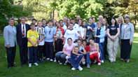 Umringt von Nachwuchs-Kickern: (v.l.) Brigitte Rode (Servicestelle für den Sport), Benno Ittermann (Vizepräsident Fußball- und Leichtathletik-Verband Westfalen), Ulrike Terdenge (Schulleiterin Barbaraschule), Bürgermeister Dr. Uli Paetzel, Heike Dignaß (Ortsvereinsvorsitzende SPD Westerholt-Bertlich) und Ralf Kirchhof (Jugendleiter SuS Bertlich).