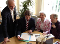 Ferdinand von Kleinsorgen überreicht Bürgermeister Dr. Uli Paetzel und Kirsten Noetzel, Leiterin des Stadtarchivs, das Foto seines Großvaters.