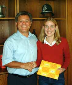 Claudia Menzel bekam vom stellv. Bürgermeister Herbert Werner ein Präsent für die Gasteltern mit auf den Weg in Hertens englische Partnerstadt.