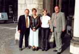 Detlef Fronda (Verantwortliche für Städtepartnerschaften), Bürgermeister Dr. Uli Paetzel, Bürgermeister Frieder Stimpel und der Leiter des Bürgermeisteramts, Günter Rose im Schneeberger Ratssaal.