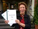 Brigitte Rode (Sportbüro) zeigt den Feedbackbogen. Hier werden alle Ergebnisse der Erstklässler festgehalten und ausgewertet.