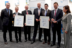 Von links nach rechts Vertreter Kreis Unna; Vertreter last mile logistik netzwerk, Dr. Grollmann; NRW-Wirtschaftsminister Garrelt Duin; Vertreter Rheine; Petra Wassner, NRW.Invest
