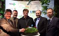 Egon Walberg (Stadtbildpflege), Elke Günther (ZBH), Bürgermeister Dr. Uli Paetzel und Rolf Schulze (Leiter ZBH) enthüllten gemeinsam das „blumige“ Stadtwappen.