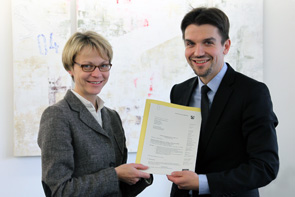 Bürgermeister Dr. Uli Paetzel und Petra Kersting, Leiterin des ZFBT, unterzeichnen den "Letter of Intent".