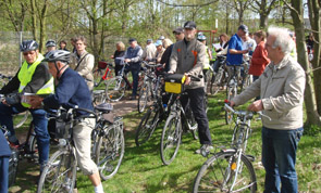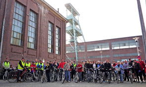 Gleich geht es los - zum Anradeln hatten sich die Fahrradbegeisterten diesmal vor dem Tourismusbüro auf dem Zukunftsstandort Ewald getroffen. Auch dabei: Bürgermeister Dr. Uli Paetzel (1. Reihe, mitte)