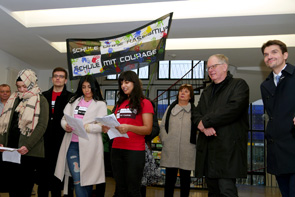 'Ich freue mich, dass die Hertener 'Schulen ohne Rassismus' dieses Kooperationsprojekt auf die Beine gestellt haben', sagte Bürgermeister Dr. Uli Paetzel. (1. v.r.) 'Gegenseitige Toleranz und Respekt sind für das Zusammenleben in unserer Stadt wichtiger denn je'.