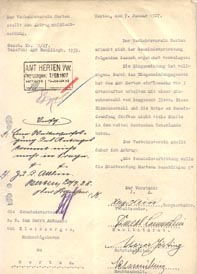Uwe Hauschild (Geschichtskreis Schlägel & Eisen), Frank Laszok (Förderverein Schacht V), Karl-Heinz Forst (beide Förderverein Schacht V), Maik Leppak (Stadtarchiv Herten) und Peter Kitzol-Kohn (Arbeitskreis Scherlebecker Geschichte(n)) freuen sich über den Fund der alten Akten.