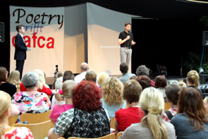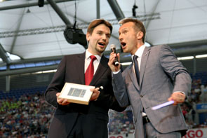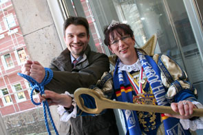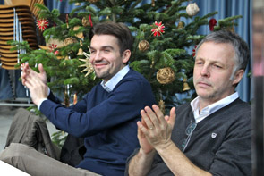 „Ganz vorne auf der Bühne drauf“ – das Präsentationsseminar für alle, die Bühnenluft schnuppern wollen. Mit Matthias Müller (links) und Benedikt Hahn (rechts) vom Stadtkabarett "Jetz ma ehrlich!"