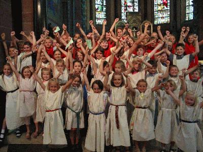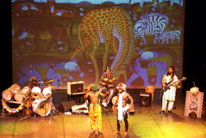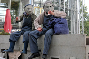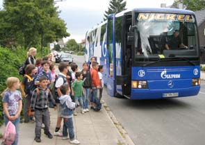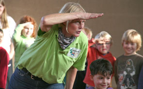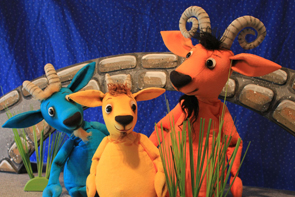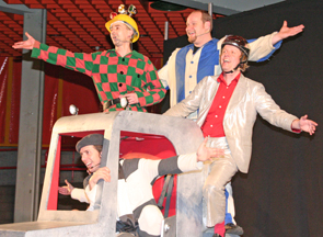Das Ensemble von "Theatertill" und die Kinderfreunde der Stadt Herten präsentieren das Theaterstück "Abgeschnallt" zur Verkehrserziehung der Erstklässler.