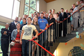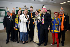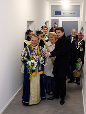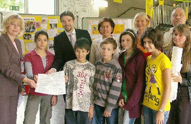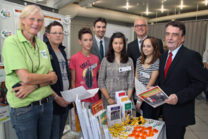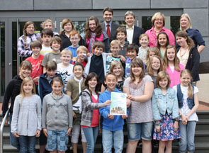 Kinderfreundin Beate Kleibrink mit Schülern der Städtischen Realschule, Bürgermeister Dr. Uli Paetzel, Landtagsabgeordneter Carsten Löcker und NRW-Minister für Bauen, Wohnen, Stadtentwicklung und Verkehr Michael Groschek.