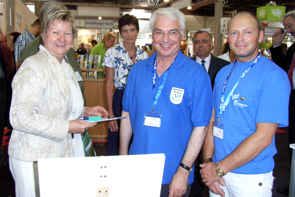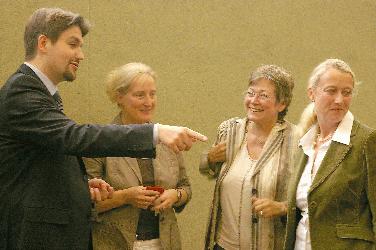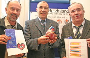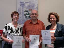 Zum Abschluss des VHS-Seminares "Vereinshomepage erstellen für Nichtprogrammierer" gab es für jeden Teilnehmer eine (Spaß)Urkunde. v.l.: Dagmar Hennecke (maniac robofreaks), Norbert Huhne (Koronarsport), Bettina Heidenreich (Förderverein Gymnasium)