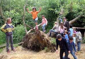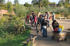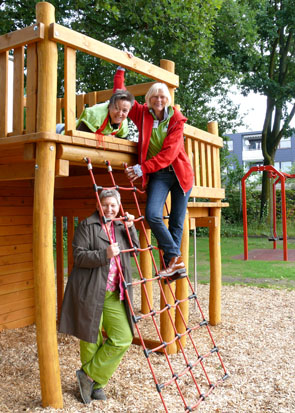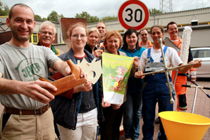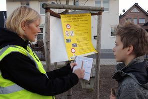 Kinderfreundin Beate Kleibrink erklärt anschaulich den Unterschied zwischen dem verkehrsberuhigten Bereich und der Spielstraße.