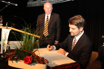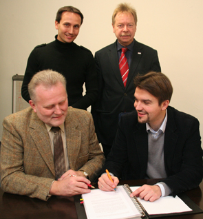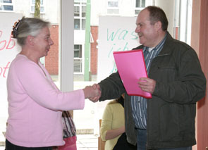 Bürgermeister Dr. Uli Paetzel unterschreibt zusammen mit Horst Schlüter, dem Vorsitzenden der Steuerungsgruppe, die Bewerbungsunterlagen.