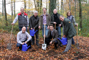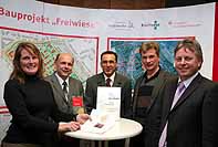 (v.r.:) Bürgermeister Dr. Uli Paetzel mit Geschäftsführer der BuM Ingo Ossenbühl, Geschäftsführer der Feldhausgruppe Martin Feldhaus sowie Vertretern der Stadt, der Feldhaus Gruppe und der ausführenden Baufirma Althoff.