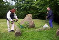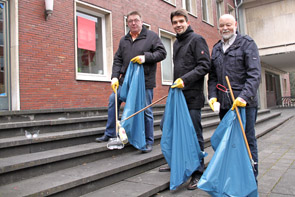 Bürgermeister Dr. Uli Paetzel (links) säubert gemeinsam mit seinen Stellvertretern Karl-Heinz Forst (mitte) und Winfried Kunert (rechts) die Blumenbeete vor dem alten Rathaus in Westerholt.