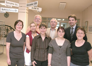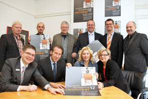 v.l.: Hans-Georg Katzmarzik (Schulleiter Eduard-Spranger-Berufskolleg Gelsenkirchen), Nikolaus Bley (DGB-Bildungswerk), Dr. Manfred Beck (Vorstand für Kultur, Bildung, Jugend und Sport der Stadt Gelsenkirchen), Bürgermeister Dr. Uli Paetzel, Ulrich Stromberg (Fachbereichsleiter Kultur, Bildung und Sport der Stadt Herten), Frank Senner (VHS-Leiter Herten), Dr. Beatrix Waldenhoff (Wissenschaftliche Mitarbeiterin), Dr. Josef Hülsdünker (DGB-Regionsvorsitzender).