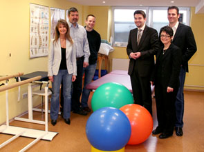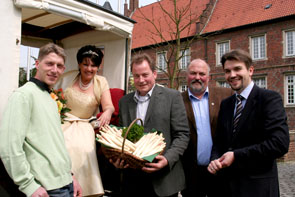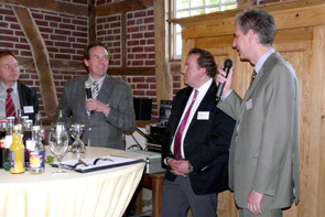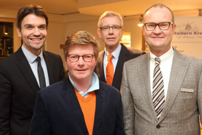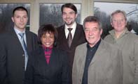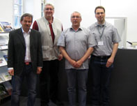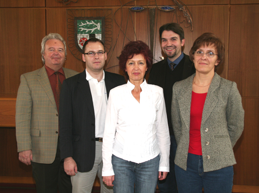 Dirk Vogelsang (Assistent der Geschäftsleitung), Bürgermeister Dr. Uli Paetzel, Michael Blume (Leiter Wirtschaftsförderung), Geschäftsführer Horst Vogelsang und Hermann Fanenstich (Leiter Einkauf).