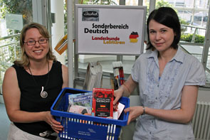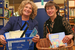 Stefanie Dobberke, Leiterin des Amtes für außerschulische Bildung und Kultur (links), und Elke Hodde-Kalich, Leiterin der Stadtbibliothek (rechts), freuen sich über den offiziellen Start der „Lernbar“.