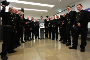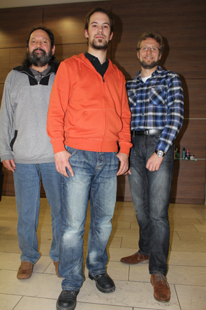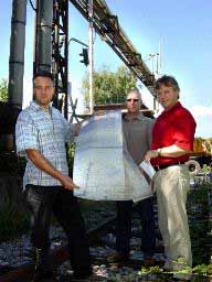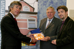 Bei der Verleihung des Wasserzeichens auf Ewald: Dr. Jochen Stemplewski, Dr. Uli Paetzel und Prof. Dr. Hans-Peter Noll (v.l.)