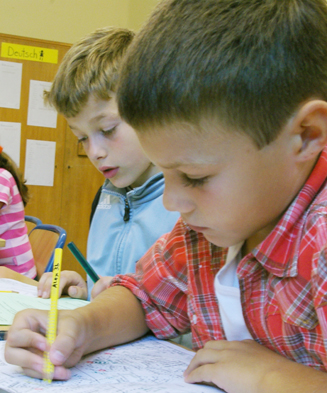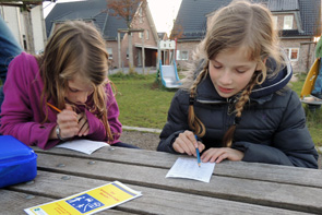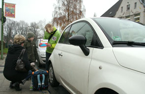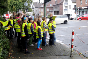 Die Achtenbeckschüler füllen ein Arbeitsblatt zum verkehrssicheren Verhalten aus. Sofie hat ihr Blatt schon ausgefüllt.