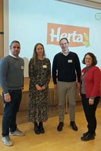 (v.l.) Stefan Promnik, Susanne Henning (beide artgaffa), Sabine Weißenberg (Kulturbüro Herten) und Praktikantin Hatice Elieyi halten drei Ausstellungstafeln in den Händen.
