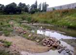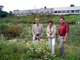 „Fluss Stadt Land“-Vorsitzender und Bürgermeister Johannes Beisenherz aus Castrop-Rauxel, Recklinghausens Bürgermeister Wolfgang Pantförder und Bürgermeister Dr. Uli Paetzel bei der Staffelstab-Übergabe am Fuße der Halde Hoheward.