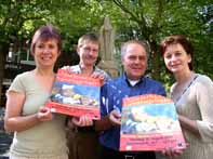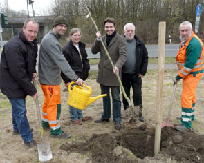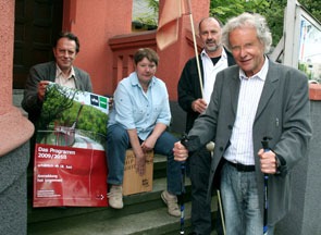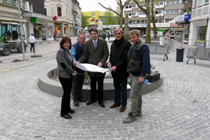 Egon Walberg (Stadtbildpflege), Elke Günther (ZBH), Bürgermeister Dr. Uli Paetzel und Rolf Schulze (Leiter ZBH) enthüllten gemeinsam das „blumige“ Stadtwappen.
