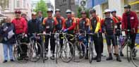 Bürgermeister Dr. Uli Patzel (links) in ungewohnter Rolle: Er gibt den Startschuss für das Rennen der jüngsten Mountainbiker. "