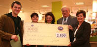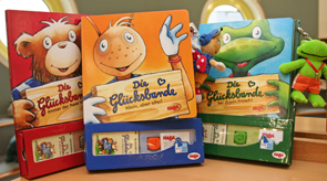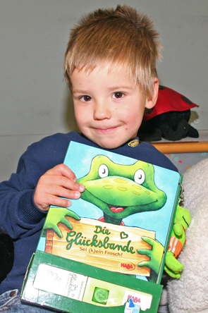 „Fit von klein auf“ – Florina erklärt, wie es geht. Beate Buiting von der BKK übergibt Silvia Konze (Mitarbeiterin Bibliothek im Glashaus) fünf Gesundheitskoffer, mit vielen Tipps rund um das Thema Gesundheit.
