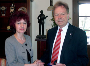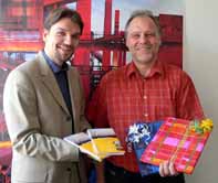 Bürgermeister Dr. Uli Paetzel (li.) gab Wolfgang Radtke Gastgeschenke mit auf den Weg nach Doncaster.