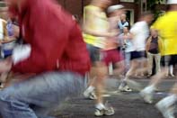 Cem rennt ins Ziel! Die Studenten feuern sie an, klatschen ab, wenn sie ins Ziel laufen und machen Mut.