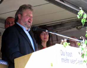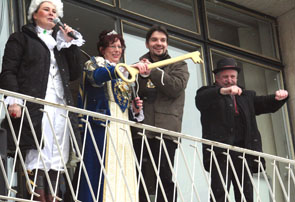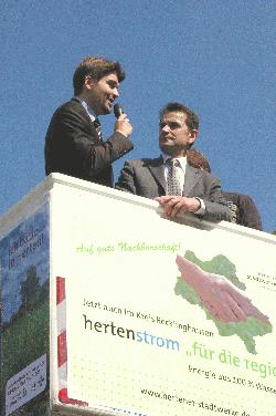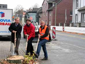 Stadtkämmerer Matthias Steck und Schneebergs Bürgermeister Frieder Stimpel weihen die 'Hertener Straße' ein.