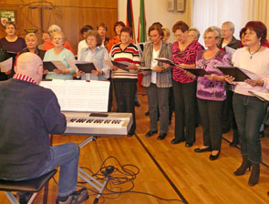 v.l.: Jürgen Opalka (Gemischter Chor), Willi Kirch (Männerquartett Schlägel und Eisen), Zeppe Hofmann (Mit Zeppe singen), Karl Hildebrandt (Shantychor), Josef Schlick (MGV-Scherlebeck), Reinhold Kleinekort (Shantychor), Jutta Soßna-Grabelus (JeKi-Chöre), Ursula Hillig (Schulchor „In der Feige“) und Petra Hellmann (Chorus female) werden am Day of Song teilnehmen. Bettina Hahn (2. v. r., hockend) betreut die Veranstaltung von städtischer Seite.