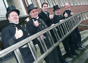 Bürgermeister Dr. Uli Paetzel (rechts) besuchte Almir Bajrami (2. v. r.) und seine Mitarbeiter im Friseursalon.