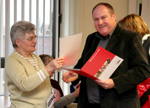 Die Projektteilnehmer freuen sich über ihre Broschüre. Mitarbeiter der Vestischen Arbeit, Jörn Holdt und Sabine Schulz haben das Projekt ein halbes Jahr lang begleitet.