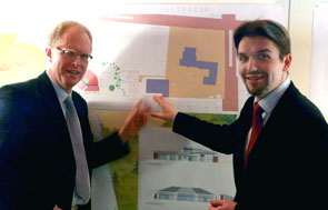 Projektleiter Bernd Lohse von der RAG Montan Immobilien AG (re.) hatte einige Details zur weiteren Erschließung der Bestandsgebäude auf Ewald dabei.