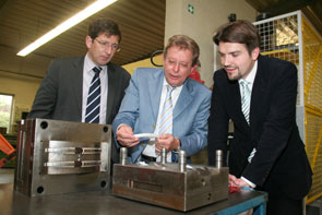 Ließen sich von Andreas Weidner (2. v. r.) das Unternehmen zeigen: (v.l.) Michael Blume, Leiter der Wirtschaftsförderung, Stadtbaurat Volker Lindner und Bürgermeister Dr. Uli Paetzel.
