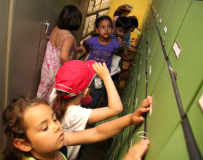 Die beiden Emilies haben - wie alle Schüler - zur Belohnung einen Kinderfreunde-Turnbeutel bekommen.
