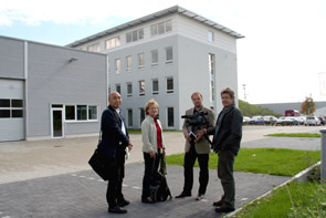 Bürgermeister Fred Toplak, Geschäftsführer Ingo Ossenbühl, Prokurist Stefan Arnoldi und der Leiter der Wirtschaftsförderung Michael Blume (v.l.) beim Unternehmensrundgang.