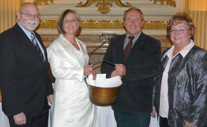 Sie griffen in den Kupferkessel und ermittelten die Gewinner des Rätsels: Karl-Heinz Forst, Carola I., Jochen Welt und Brunhilde Magerstedt (v. links).