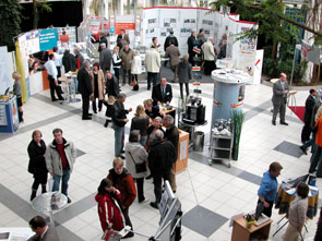 Thorsten Westerheide (Hertener Stadtwerke, r.) berät Interessenten am Stand der Hertener Siedlungen.