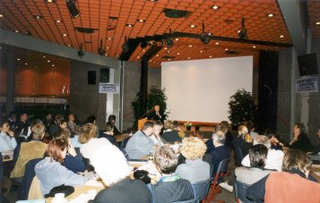 SPD-Landtagsabgeordneter Dr. Bernhard Kasperek informierte bei bei der 2. Zukunftswerkstatt Schule am 03.12.1999 in der Hertener Gesamtschule über vom Land geförderte Schulprojekte in Herten.
