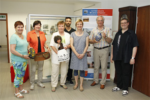 Die Ausstellung, mit eigenen Erinnerungsstücken der Siebenbürger Sachsen, wird im Stadtarchiv eröffnet. (v.l.) Margret Grotzki, Elfriede Thodt-Werner, Susanne Hartig, Tobias Diener, Karin Roth, Artur Porr, Maik Leppak