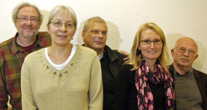 Autoren des Stammtischs "Die TRAM" aus dem Vest Recklinghausen lesen aus ihren Werken. Es sind dabei (v.l.n.r.) Helmut Peters, Angelika Köster, Uli Dittmar, Britt Glaser und Norbert Kühne. Foto: Ingo Freitag